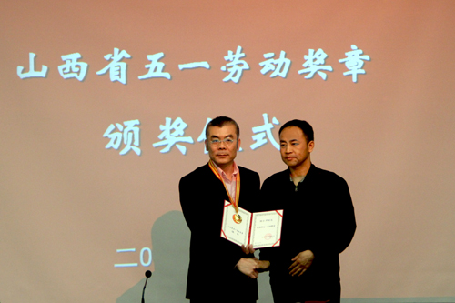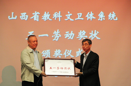张建平主席为学校颁发山西省教科文卫体系统五一劳动奖状。