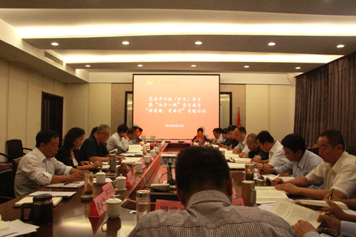 9月22日下午,学校举行党委中心组(扩大)学习暨“两学一做”学习教育“讲道德、有品行”专题研讨。学习由党委书记张汉静主持,党委副书记、校长王建国,党委副书记王俊刚,党委副书记刘锐,纪委书记李少英,副校长张永德,副校长武升平,副校长郭卫东,副校长王红叶,校领导梁云阶及学院办公室、组织部、宣传部、学工部、工会、团委主要负责人等党委中心组成员,各党总支书记或主持工作副书记参加学习。