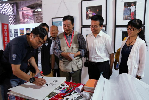 中国摄影家协会理论委员会副主任、著名摄影家、视觉文化评论家、策展人鲍昆来到我校展区参观,对我校学生作品进行了点评,对我校坚持让学生“深入生活,用镜头表现生活的真谛”的专业教学理念给予了高度评价,并且亲笔写下“传媒是未来”的留言。