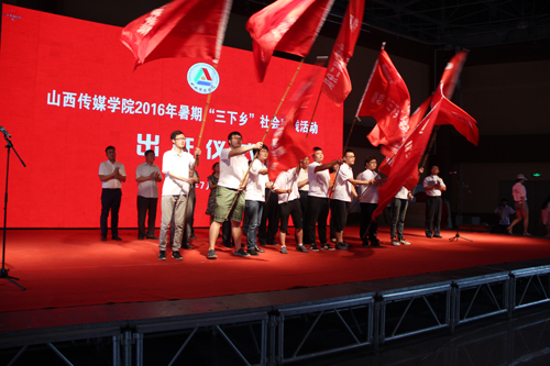 仪式上,张汉静书记为学校2016年暑期“三下乡”社会实践队总队授旗。同时,校领导为各实践分队授旗。