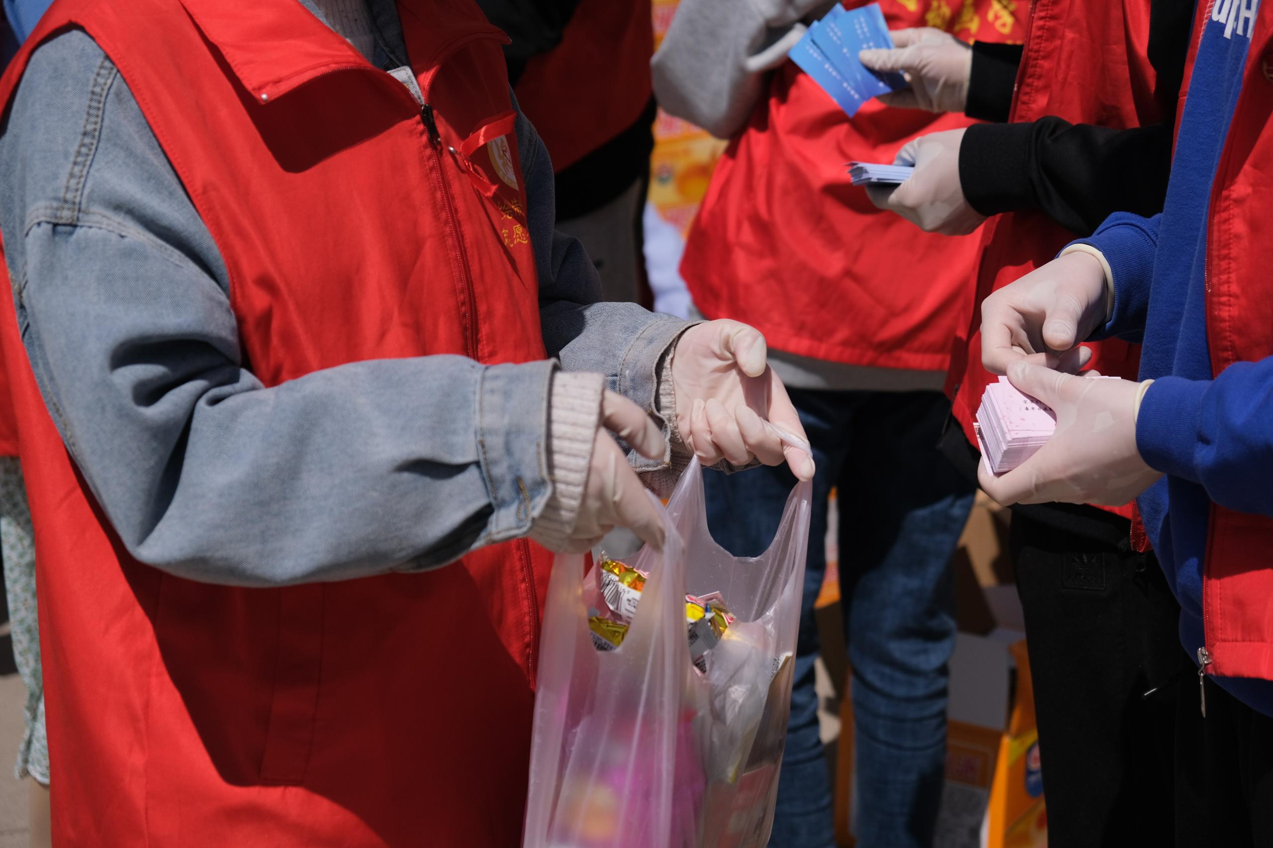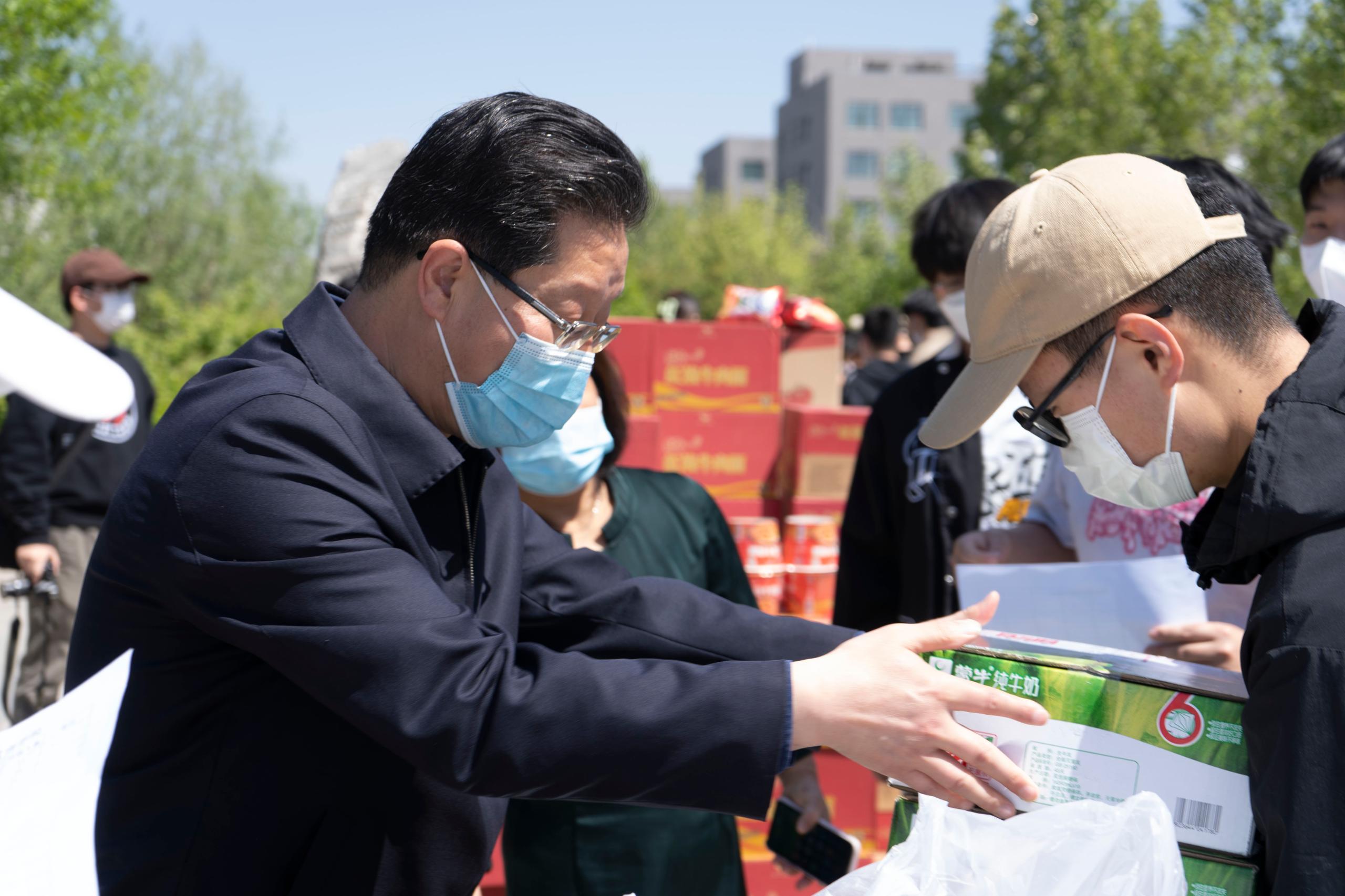 本次发放的暖心礼包包含牛奶、蛋糕、薯片、方便面、健力宝等五种食品,共计11件,涉及七千多名师生员工。为遵守疫情防控要求,减少人员聚集,物资发放分别在体育馆、篮球场、素质拓展中心、食堂前广场、图书馆东广场五个区域按学院分批次进行。物资发放过程中,学生们佩戴口罩,井然有序。
